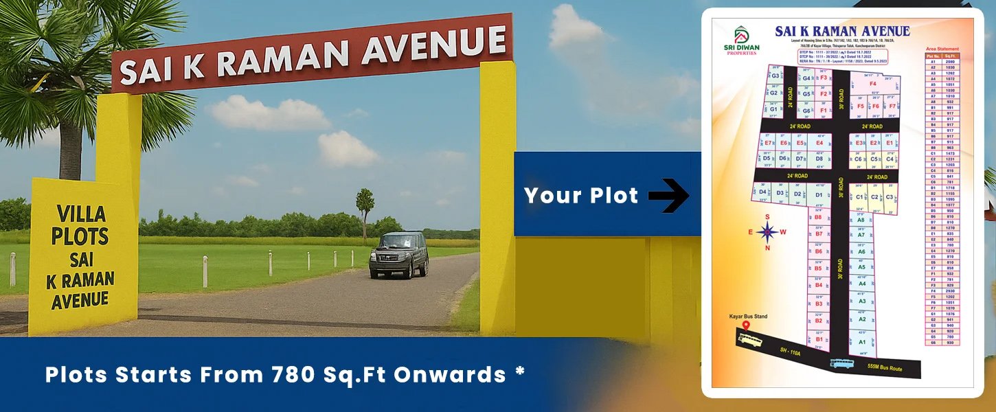 Sri Diwan Properties offers a diverse range of residential plots for sale in Chennai, ideal for both investors and homebuyers. Our CMDA and DTCP-approved plots are situated in gated communities with top-notch amenities and infrastructure. Each project is strategically located to provide seamless connectivity and easy access to schools, hospitals, and commercial hubs. Explore our premium residential land listings in Chennai and take the next step toward building your dream home.We understand the evolving market trends and guide clients to make smart investment decisions.Each property we sell undergoes a thorough documentation check to ensure complete legal clarity. Whether you’re a first-time buyer or an experienced investor, we cater to every segment with equal dedication.